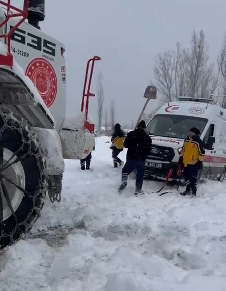Almus ilçesi Çevreli beldesinde rahatsızlanan kişinin yakınları, 112 Acil Çağrı Merkezi'ni arayıp, yardım talebinde bulundu. Bunun üzerine beldeye sağlık ekipleri sevk edildi. Ancak ambulans, yoğun kar ve buzlanma nedeniyle yolda kaldı. Ambulansın mahsur kaldığı bilgisinin iletilmesi üzerine Almus Kaymakamlığı'nın koordinasyonundaki İlçe Özel İdare birimleri bölgeye sevk edildi. Ambulans, iş makineleri ve halatla çekilip saplandığı yerden çıkarıldı. Yolun ulaşımının açılmasının ardından sağlık ekipleri hastaya ulaşarak gerekli müdahaleyi gerçekleştirdi. (DHA)