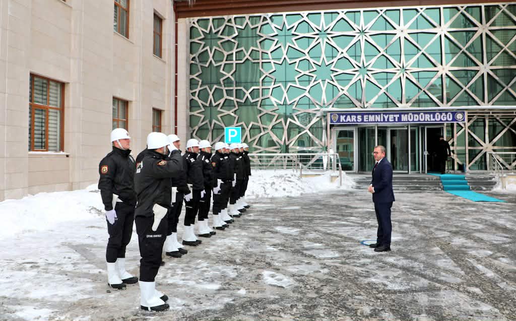 Vali Ziya Polat, İl Emniyet Müdürlüğü binasına gelişinde tören mangası tarafından resmi törenle karşılandı. Ziyarette Vali Polat’a; İl Emniyet Müdürü Murat Abdullah Tombul, Jandarma Alay Komutanı Kıdemli Albay Yusuf Mutlu Genç, emniyet birimi şube müdürleri ve çok sayıda polis memuru eşlik etti.