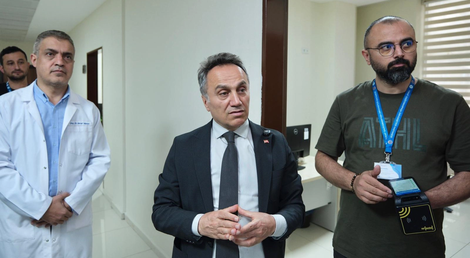 TOGÜ Araştırma ve Uygulama Hastanesi’nde Dijital Sağlık Koordinatörlüğü tarafından yürütülen çalışmalar kapsamında, RFID tabanlı gerçek zamanlı konum takip (RTLS) teknolojisi kullanılmaya başlandı. Yeni sistemle birlikte, özellikle acil servis, yoğun bakım ve ameliyathane gibi hayati öneme sahip birimlerdeki mobil cihazların anlık konumu takip edilebilecek. Hastanede yürütülen çalışmaları yerinde inceleyen Rektör Prof. Dr. Fatih Yılmaz, dijital dönüşümün sağlık hizmetlerine katkısına değinerek şunları söyledi: